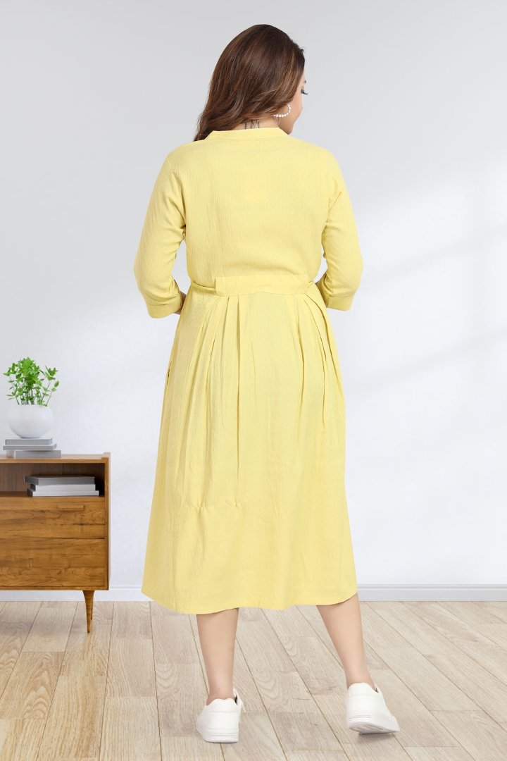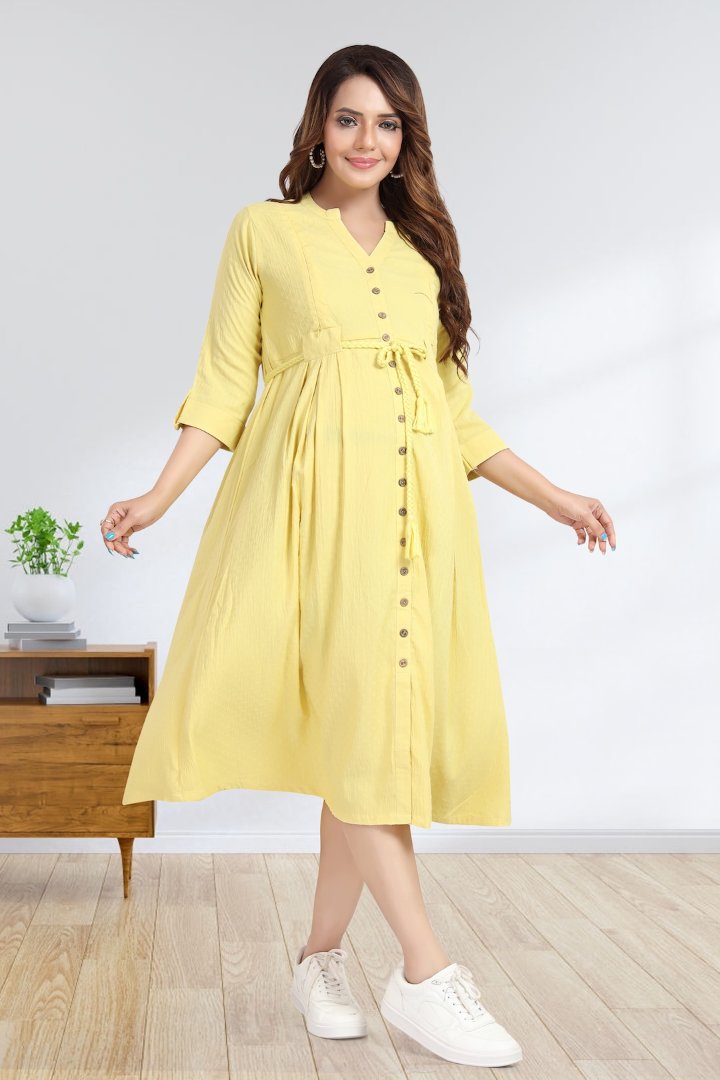 This self print Dobby fabric Dress with concealed zippers makes it very comfortable and elegant all at once . The tassel which can be used as a belt makes it a nice pick for any event or for a long awaited coffee date .