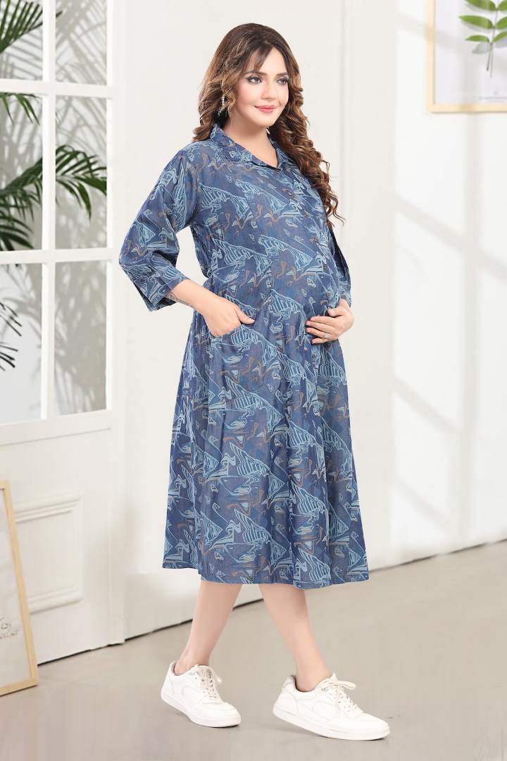 Psychedelic Printed Denim Maternity Dress