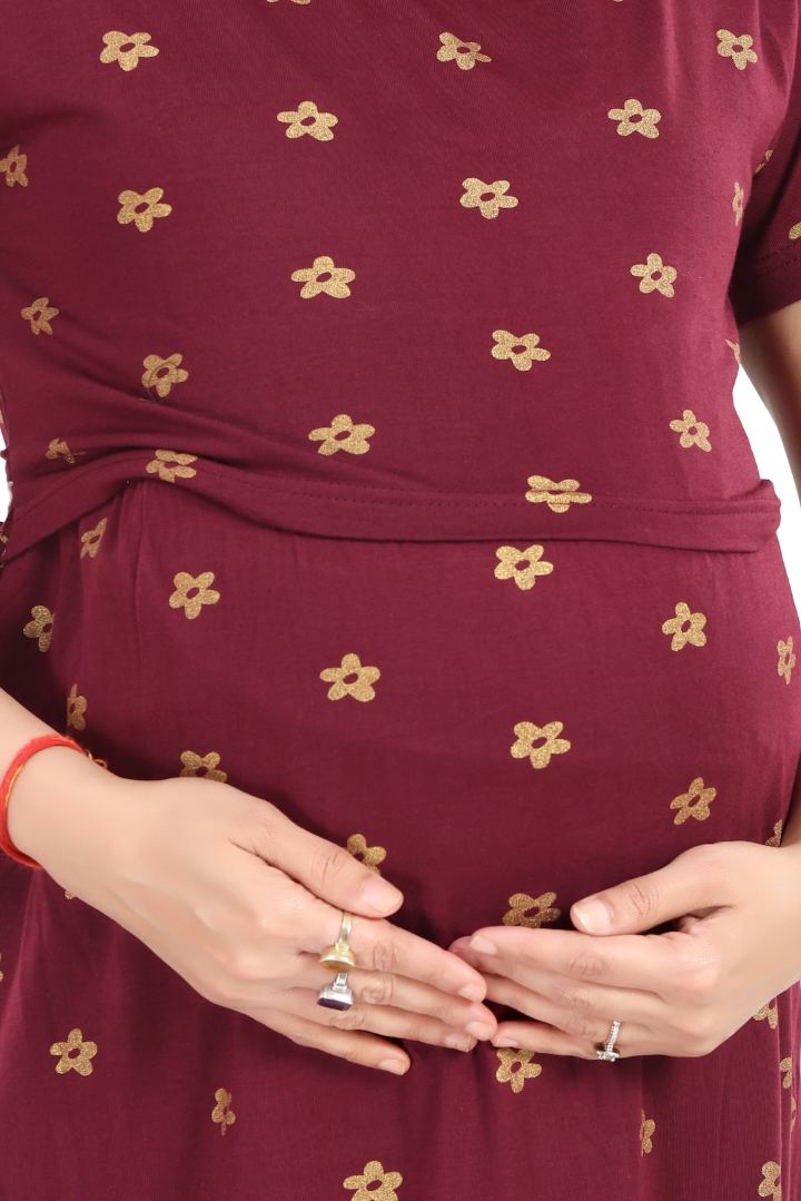 Shimmer Maroon Zipless Feeding Nightie